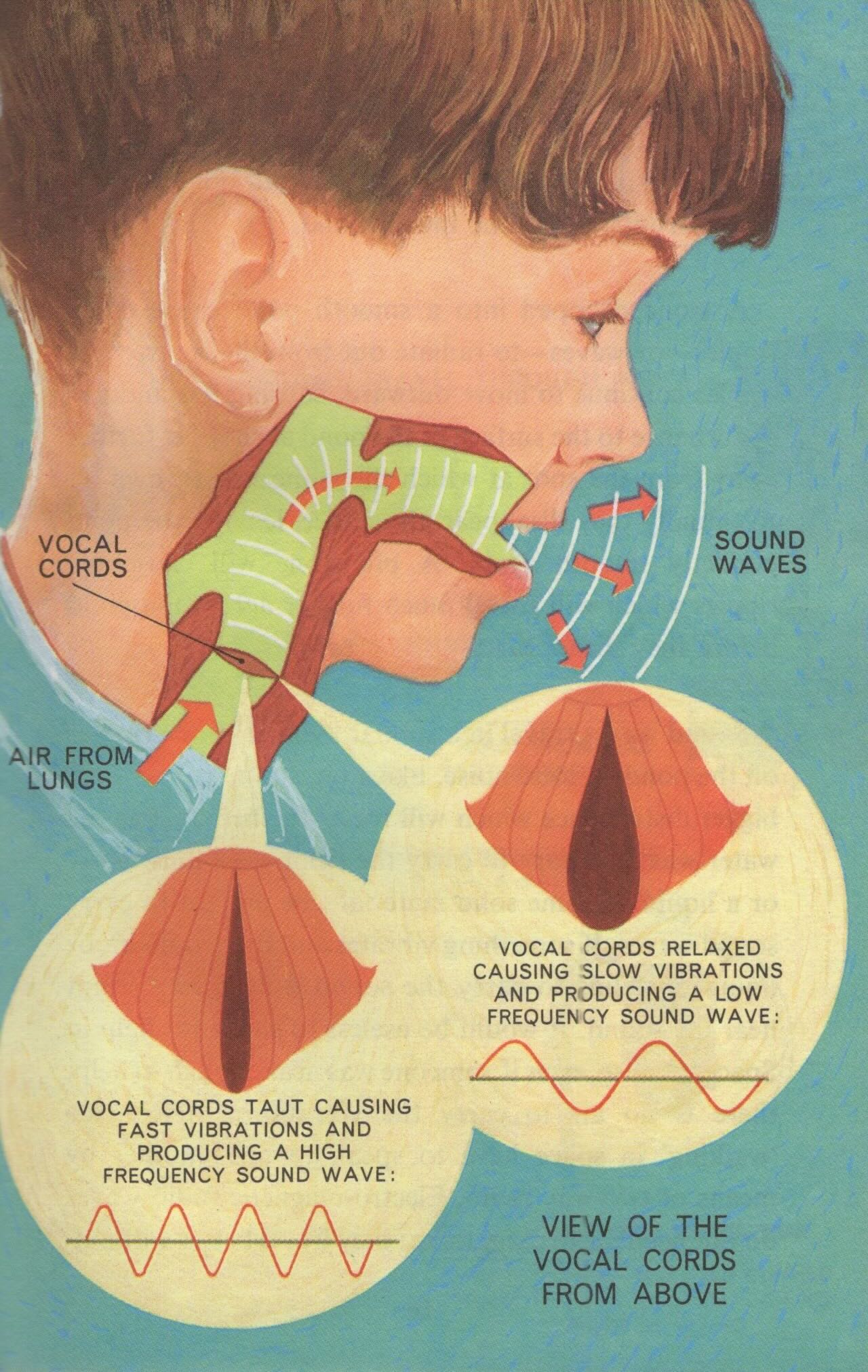 Different kinds of sounds are the result of different sorts of vibration. If something vibrates frequently, thats is - a great many times per second, it produces a high-frequency sound. We hear it as a high-pitched noise like a squeak, a whistle or a scream. On the other hand, something vibrating slowly produces a low-frequency sound. It has a low pitch which is heard as a low note like a growl, a groan or a very deep voice.