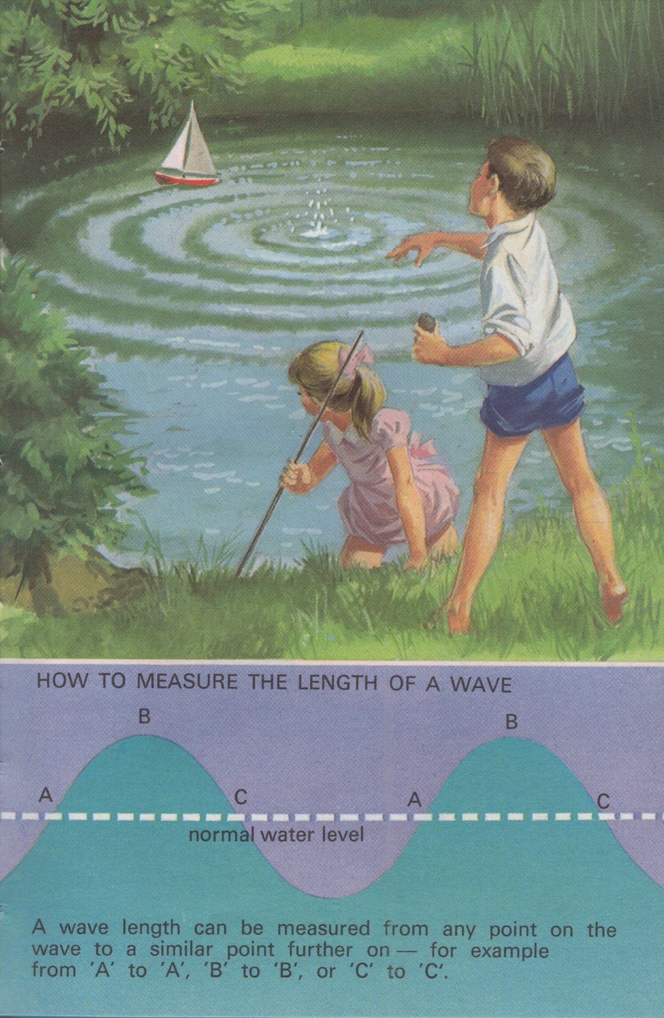 On a calm day, stand on the bank of a pond and throw a fair-sized stone so that it plunges into the pond near the centre. From the point where the stone hits the water, rings of ripples will spread out towards the banks of the pond. If you put a cork or toy boat onto the water, it will bob up and down when the ripples - or small waves - reach it.