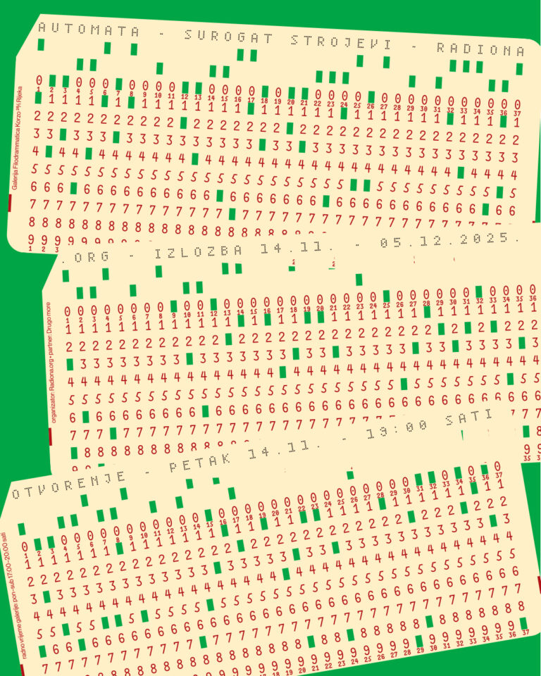 U petak, 14. studenoga 2025. s početkom u 19h otvara se Radionina izložba „Automata – surogat strojevi“ u Galeriji Filodrammatica, Drugo more – Rijeka. Izložba ostaje otvorena do 5. prosinca 2025. i dio je serije Signali, bitovi i surogati kojom se Radiona.org bavi tijekom ove godine.